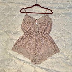 Floral lace romper with adjustable straps and elastic waist. Super cute!