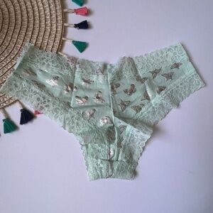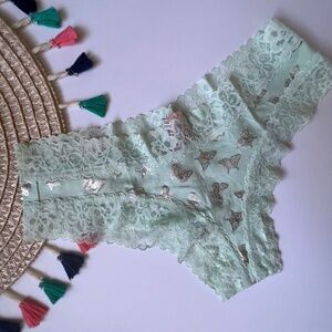 Victoria's Secret Lace Waist Cotton Cheeky Panty Misty Jade Butterfly Charm Small NEW
