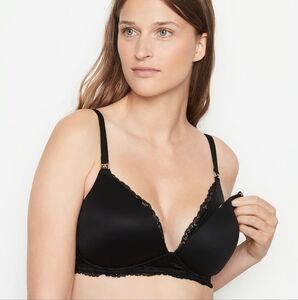 Victoria's Secret Lace Wing Wireless Nursing Bra Black Lace Trim 40C