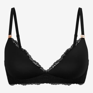 Elegant black bra with lace trim. Smooth cups. Adjustable straps. Can be worn cross-back.