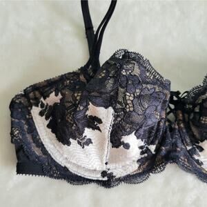 Victoria's Secret Lace-Up Lace Bra Black Ivory 34C