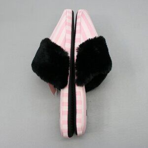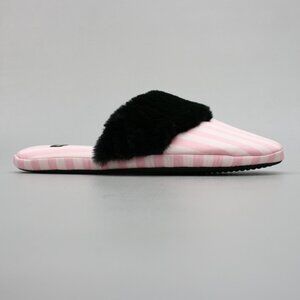 Victoria's Secret Ladies 9-10 L Pink Stripe Faux-Fur Satin House Shoes Slippers