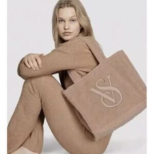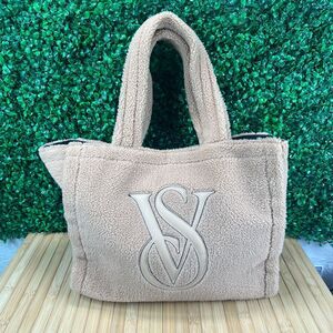 Victoria’s Secret Large Cozy Plush Fleece Sherpa Tote Bag Purse 14 x 12 x 7 in