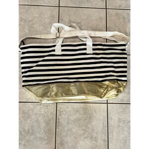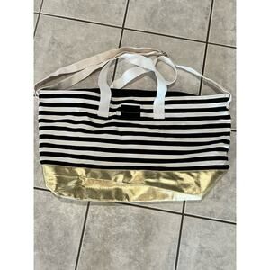 Victoria's Secret Large Duffle Beach Tote Striped Weekend Bag with Gold Bottom, pics show measurements, great conditon, has strap for tote or shoulder bag. Smoke free home