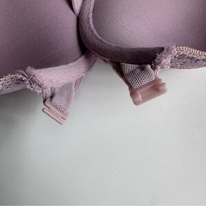 Chic lavender lace design. Offers comfort and elegance. Front clasp. Lace back. Push up bra. 32B. EUC