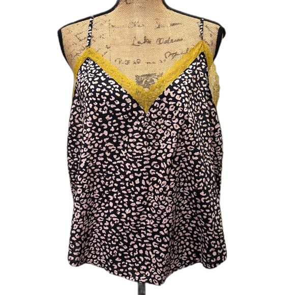 Victoria's Secret Black Pink Leopard Print Camisole Lace Trim Gold Metallic Sexy Size Extra Large