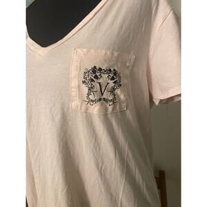 Victoria's Secret Light Pink Long Sleep Shirt Short Sleeve VS Logo Pocket Small