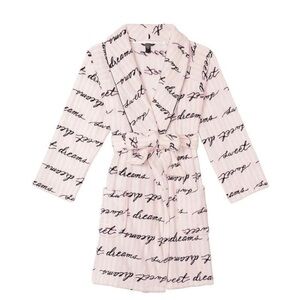 Luxurious light pink robe with elegant script design. Ideal for relaxing in style.