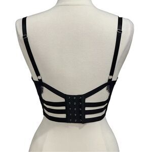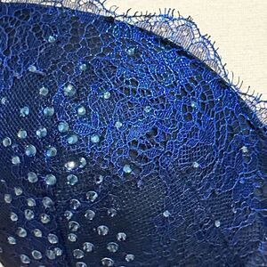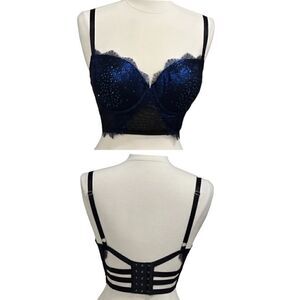 Victoria’s Secret Balconet Longline Cage Strap Bra in Size 34DD in Black and Blue color with Rhinestone details