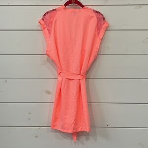 Cap Sleeve Silk Robe with Matching Accented Lace Shoulders in a Beautiful Coral Color.