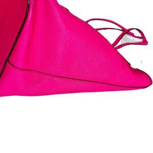 Unveil your love for luxury and elegance with the Victoria's Secret Extra Large Pink Weekender Tote. This chic carryall bag, measuring 13 inches in height and 22 inches in width, is crafted from premium faux leather, exuding a sophisticated aesthetic that's both timeless and on-trend. Its solid pink exterior is complemented by a matching strap, offering a seamless and stylish look perfect for any outing. Functionality meets fashion with this lightweight tote's open-top design, allowing for easy access to all your essentials. The bag's generous size, coupled with a practical depth of approximately 7-8 inches, provides ample space for your daily necessities. Adorned with a charming accessory charm, this tote is a limited-edition piece that adds a touch of exclusivity to your collection