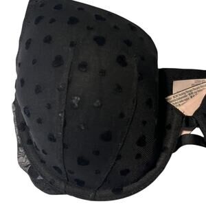 Victoria's Secret Lined Demi Bra Women's 34D Black Velvet Hearts Romantic