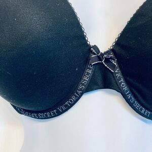 Victoria's Secret Lined Perfect Coverage Bra 34D Black Logo Trim