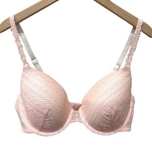 Victoria’s Secret Lined Perfect Coverage Bra Light Pink Lace Underwire Size 34D