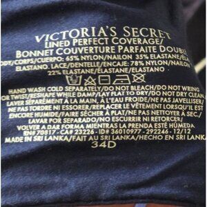 Victoria’s Secret Lined Perfect Coverage blue with lace trim Bra size 34D