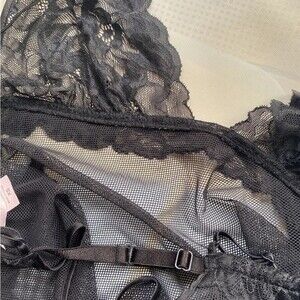 Victoria’s Secret Lingerie Chemise Slip Teddy Babydoll Black Mesh W Lace…