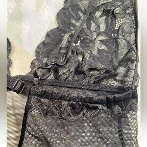 Vintage Victoria’s Secret Lingerie Chemise Slip Teddy Babydoll sexy Black Mesh stretchy with floral Lace ,Adjustable strap See through Size XS. Condition Is new without tag