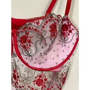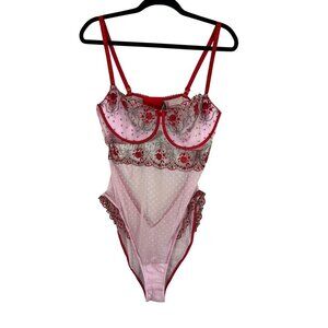 Victorias Secret Lingerie XXL Pink Floral Teddy Sexy Pushup Mesh Dot Girly