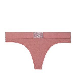 Victoria's Secret Logo Cotton Shine Patch Thong Panty Pretty Vintage Rose Medium NEW