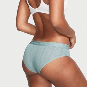 Victoria's Secret Logo Waist Pointelle Hiphugger Panty Sage Dust Large NEW