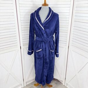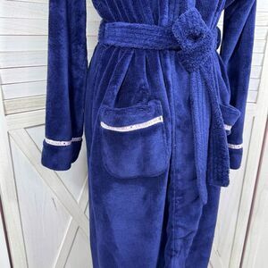Victorias Secret Logo Ribbon Trim Fleece Bathrobe Robe Blue