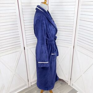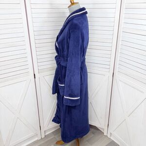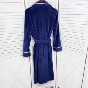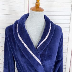 Victorias Secret Logo Ribbon Trim Fleece Bathrobe Robe Blue Small