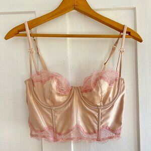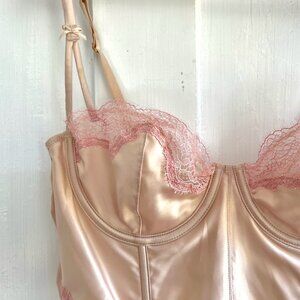 VGUC Victoria’s Secret DREAM ANGELS Unlined Long Line Balconette Corset Bra in color champagne in 36B. No flaws! Features lace trim, corset boning and adjustable shoulder straps. Super pretty and flattering! Just the right amount of structure and shaping!
