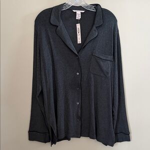 Victoria's Secret Long Sleeve Holiday Red & White Button Up Pajama Top M NWT