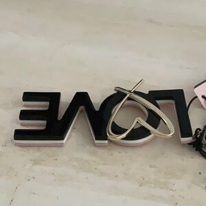 Victoria’s Secret LOVE Keychain Bag Charm VS Gold Heart Black Pink Large