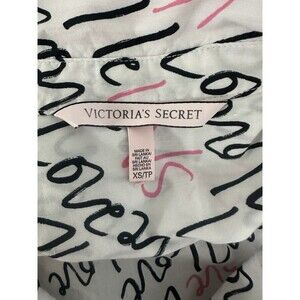 Cuddle up in this rare Victoria’s Secret pajama sleep shirt featuring an allover black and pink Love script print on crisp white fabric. This soft, relaxed-fit button-down nightshirt is ideal for sleeping, lounging, or layering as a cute oversized top.