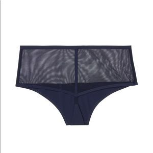 Victoria's Secret Luxe Lingerie High-Waist V-String Panty Black/Ensign Heather Small NEW
