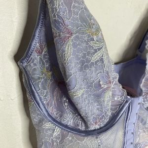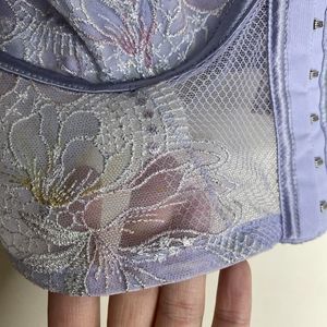 Victorias Secret Luxe Purple Sparkle Mesh Sheer Bra Bralette Size S-DD