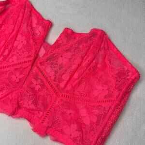 Victoria’s Secret M Hot Pink Lace Bustier Bralette Corset Bra Floral Sexy NEW