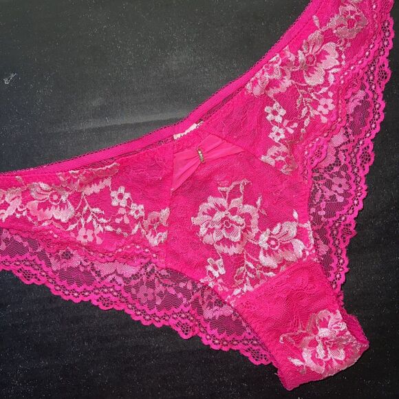 Victoria's Secret M PANTY CHEEKINI Hot PINK White Lace DESIRE