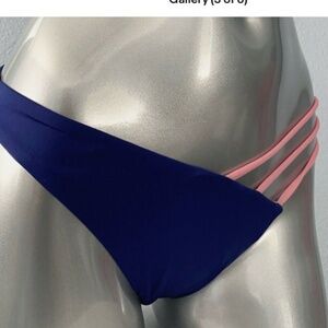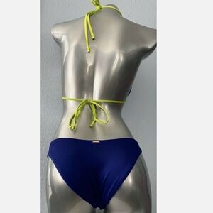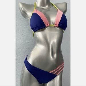Victorias Secret Marina Blue Pink Triangle Top V Strappy Bikini Bottom Set SMALL