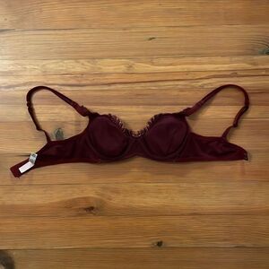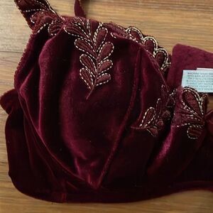 Victoria's Secret Maroon Velvet Bra 34B Underwire Silicone Inserts Embroidered