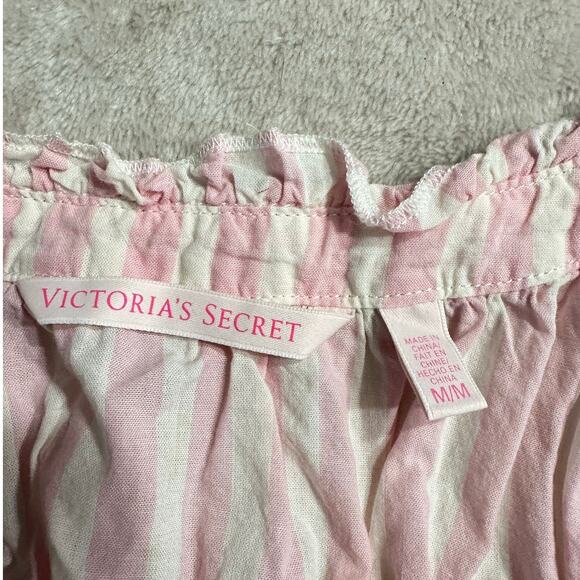 Victoria's Secret Mayfair Slip Women's Med Pink White Striped Cotton Nightgown