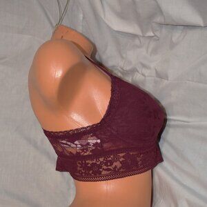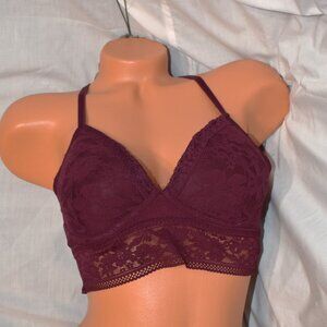 Victorias Secret Medium Maroon Lace T Back Bralette V Neck Padded Long Bra