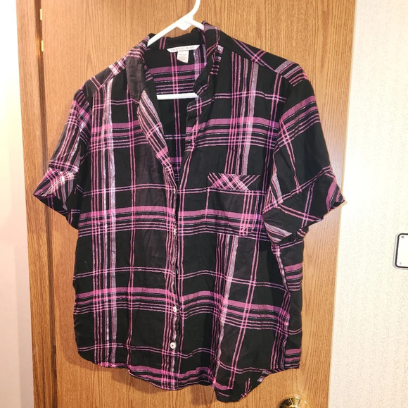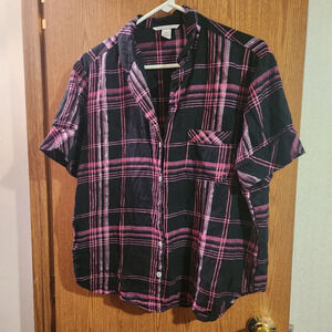 Super cute! It has a front pocket on it and buttons up. It is in great shape! When laying flat, this shirt measures approximately 20.5" across and 24" long from shoulder to hem.