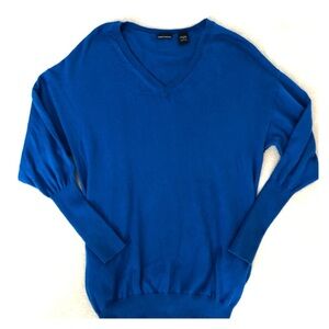 Victoria’s Secret Moda International gorgeous v-neck sweater tunic. My daughter wore with tights & booties, or can be worn as a sweater. Body style is dolman with tight knit sleeves as shown. 85% cotton/15% cashmere. Approx measurements: underarm to underarm 23”, underarm to bottom ribbing 19”, sleeves 23”, from shoulder to bottom 31”. Only worn once! (Belt not included). Also has side pockets.