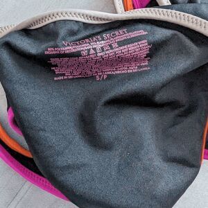 VS Bathing suit. Victoria's Secret swimwear. Sexy monokini. Front criss-crosses in front and string tie around neck. Brazilian cut bottoms. Black with neon trim. Light removable padding. Triangl inspired.
