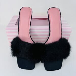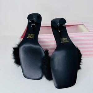 Victoria's Secret Mule Wiangora Shoes Womens Medium Black Faux Fur Heels Kitten