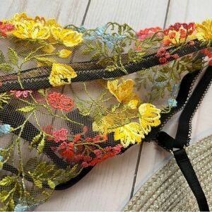 Victoria's Secret Multi Embroidery Garter Lace Floral Pink Yellow Black Size XS