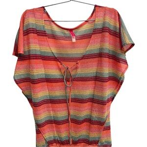 Victoria's Secret Multicolor Stripe Mesh Cover Up Dress Flounce Hem Size XS/S