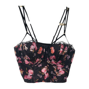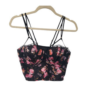 Victoria's Secret NWT Bustier Corset Top 34DD Black Floral Strappy Lace Trim
