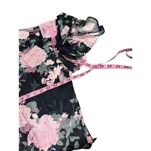 Victoria’s Secret Navy Blue Floral Satin Ruffle Sleeve Short Robe Lingerie M/L