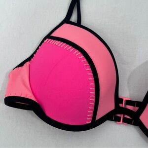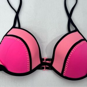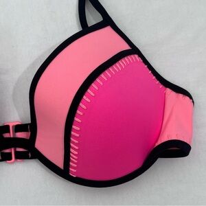 Victoria’s Secret Neon Pink Black Adjustable Strap Push Up Bikini Top Sz 34C