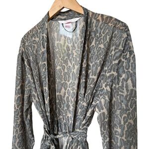 Victoria's Secret Neutral Leopard Print Sheer Robe w/ Belt One Size Knee Length