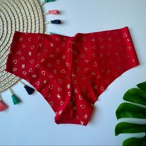 Victoria's Secret No Show Cheeky Panty Red Gold Foil Hearts Small NEW