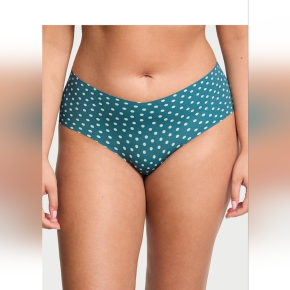Victoria’s Secret No-Show Strappy Cheeky Panty Teal Haze Dots Size L (New)